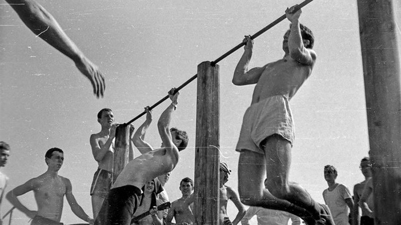 В СССР был культ спорта. И это было хорошо! Люди были здоровее, тархун вкуснее, а жизнь в целом слаще. Люди занимались гимнастикой во дворах, крутили "солнышко" на турниках (а турники были везде), занимались дома аэробикой. Даже на заводах была гимнастика!